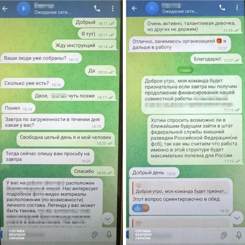 Традиционно СБУ опубликовала скриншоты переписок. "Владимир из ФСБ" на этот раз на них не "засветился", но привлекает внимание "трогательное" сообщение, автор которого просится "в штат федеральной службы внешней разведки РФ, но не ФСБ". То есть, молодые одесситки намеревались трудоустроиться в одну из российских спецслужб.