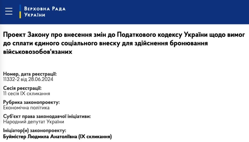 Тем временем в Верховную Раду внесены еще два законопроекта об "экономическом бронировании". Оба внесла народный депутат Людмила Буймистер.