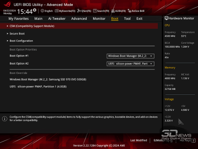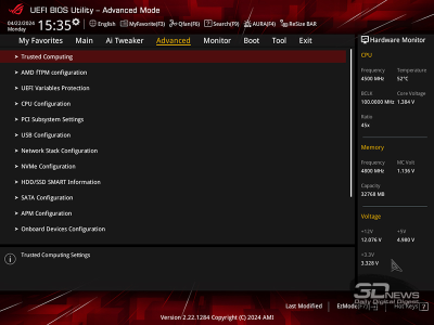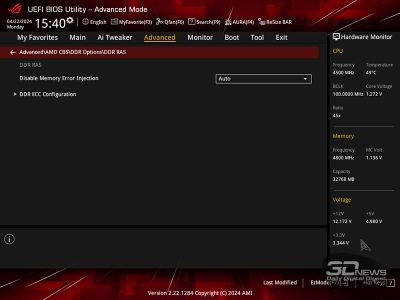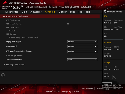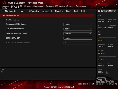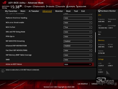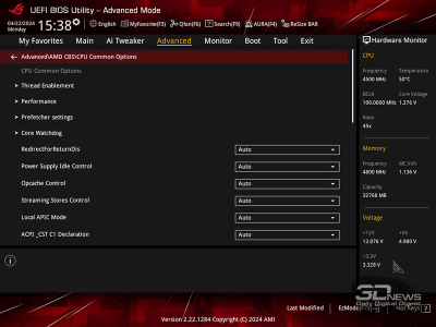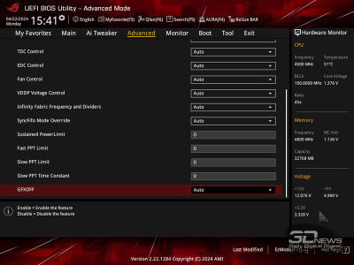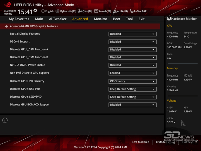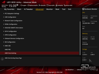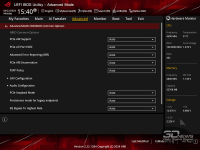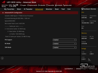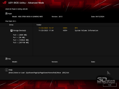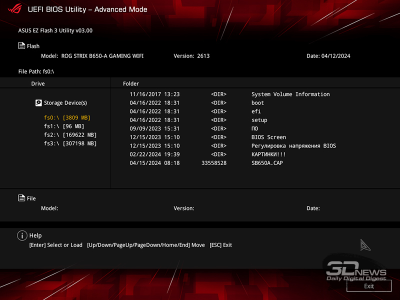 На момент подготовки материала последней доступной на официальном сайте была версия BIOS 2613, опубликованная 18 апреля 2024 года, а сама прошивка микрокода датируется 12 апреля 2024 года. На нее и была обновлена плата ASUS ROG STRIX B650-A GAMING WiFi. В описании нового BIOS значится поддержка микрокода AGESA версии Combo AM5 PI 1.1.7.0 patch A.