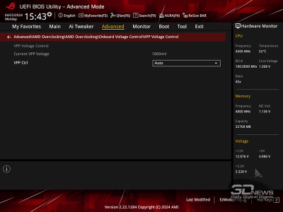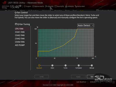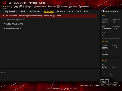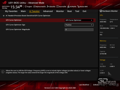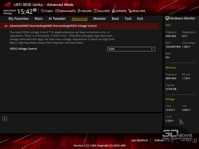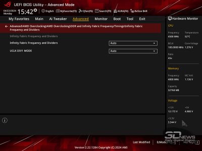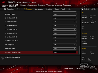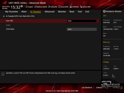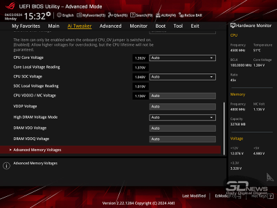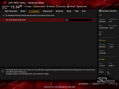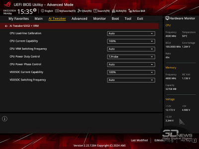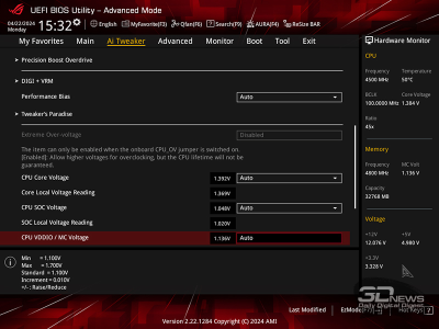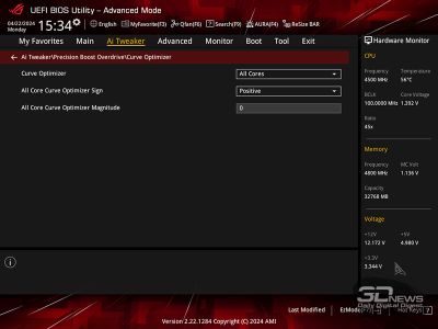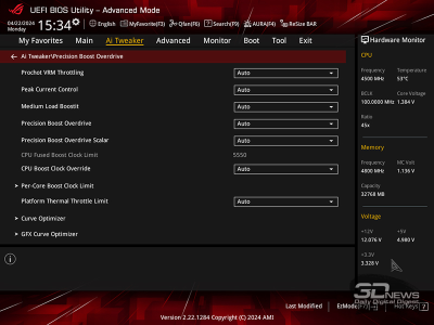 Основная часть опций тонкой доводки системы собрана в разделе Ai Tweaker. Здесь есть настройки Precision Boost Override, включая функцию Curve Optimizer, и широкие настройки памяти и Infinity Fabric. Кроме того, для быстрого разгона оперативной памяти есть несколько предустановленных профилей, которые позволяют в пару кликов увеличить производительность системы без необходимости ручного подбора параметров. Также BIOS платы позволяет довольно гибко управлять напряжениями. Например, настройка CPU Load-line Calibration имеет 4 уровня.