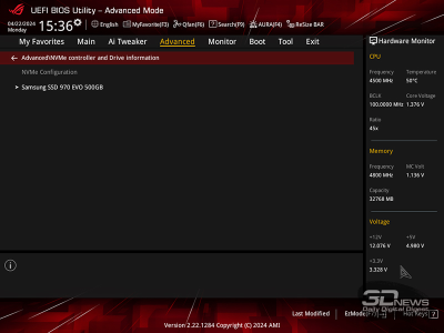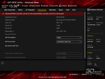 | Основной накопитель | Samsung EVO 970, 500 Гбайт |