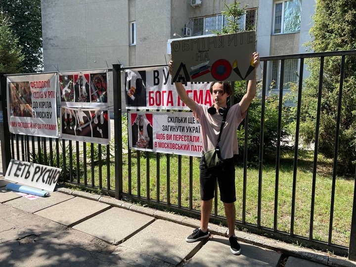Тем не менее, перед зданием суда собрались постоянные участники так называемых акций, направленных против «московской» церкви – так украинская пропаганда называет Украинскую православную церковь. Правда, у Сосновского районного суда в Черкассах «патриотов» было не очень много. Видимо, финансирование урезали?