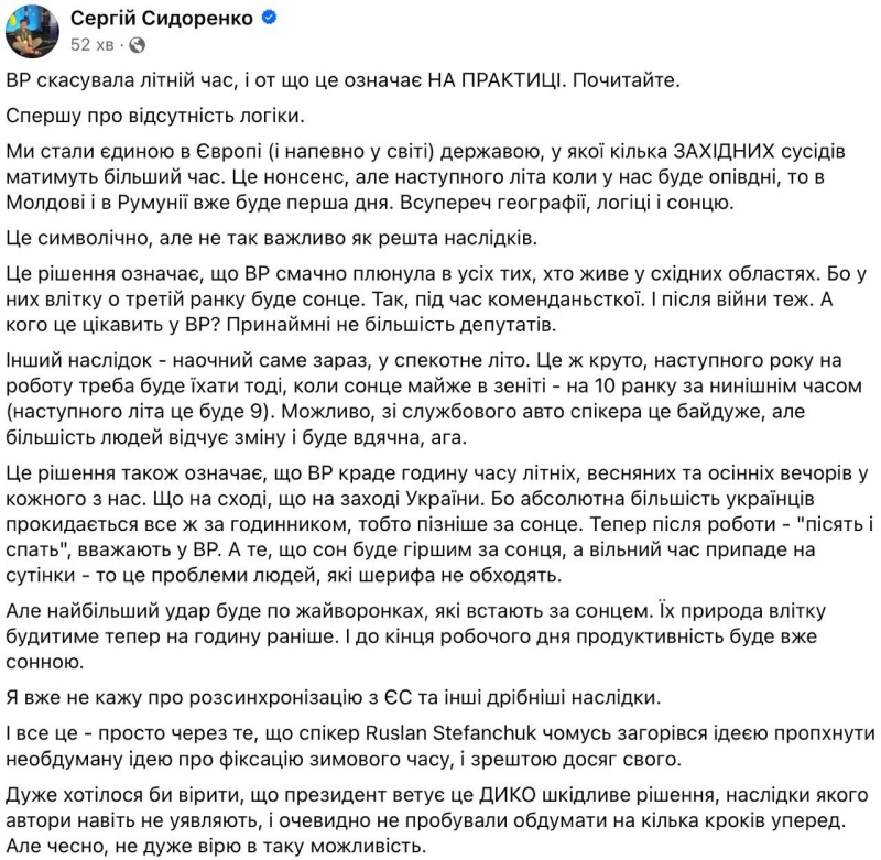 «Ну, это жесть. Я голосовал против. Это сейчас прям насущный законопроект? Где законопроект об ограниченно годных до 25 лет? Где куча других инициатив. Вместо этого мы принимаем закон о времени. Чтобы с Европой у нас было 2 часа разницы. Это же сейчас супер важно», — написал он.
