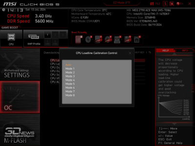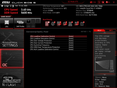 MSI MEG Z790 ACE MAX, MAG Z790 TOMAHAWK MAX WIFI, MEG Z790 GODLIKE и MPG Z790 EDGE TI MAX WIFI — это все платы с приставкой «топ». Совершенно неудивительно, что все материнки MSI оснащены схожими прошивками, позволяющими тщательно настроить центральный процессор и память системы. BIOS материнских плат MSI для платформы LGA1700 изучен досконально. Я не вижу смысла в очередной раз подробно рассказывать про все особенности оболочки Click BIOS 5.
