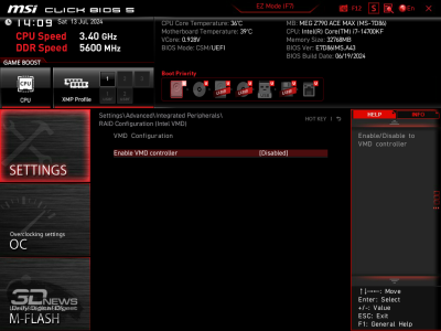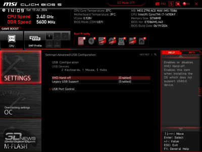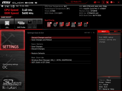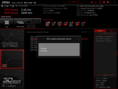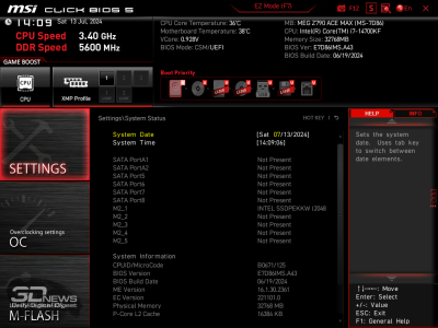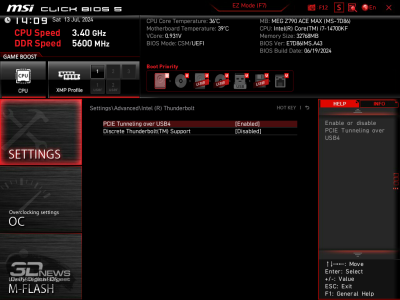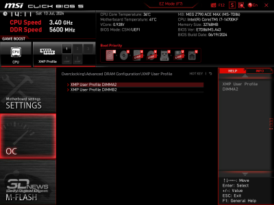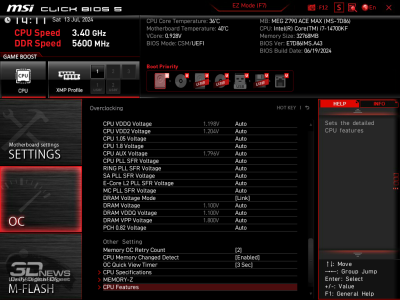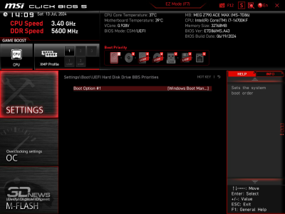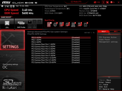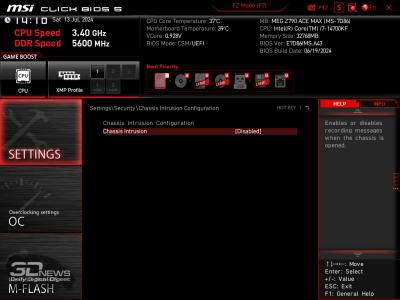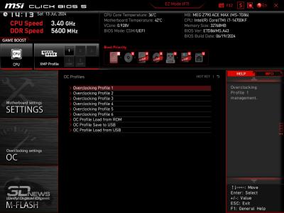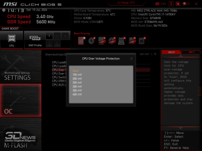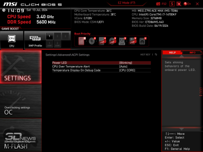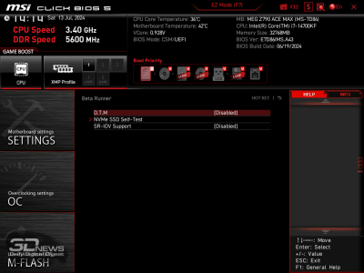 На момент написания статьи актуальной и полностью стабильной версией считалась прошивка под названием E7D86IMS.A43. В открытом доступе она появилась в конце июня и находилась в Beta-версии. С момента выхода MEG Z790 ACE MAX производитель выпустил восемь версий прошивок. На сегодняшний день устройство поддерживает все выпущенные для платформы LGA1700 центральные процессоры 12, 13 и 14-го поколений.