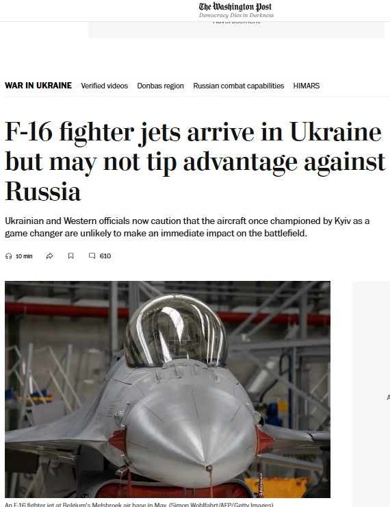 Американские официальные лица давно утверждали, что F-16 вряд ли дадут Украине решающее преимущество из-за мощи российской ПВО. Украинские же официальные лица в очередной раз повторяют: F-16, как и другие виды вооружения, Запад поставил запоздало и в недостаточных количествах.