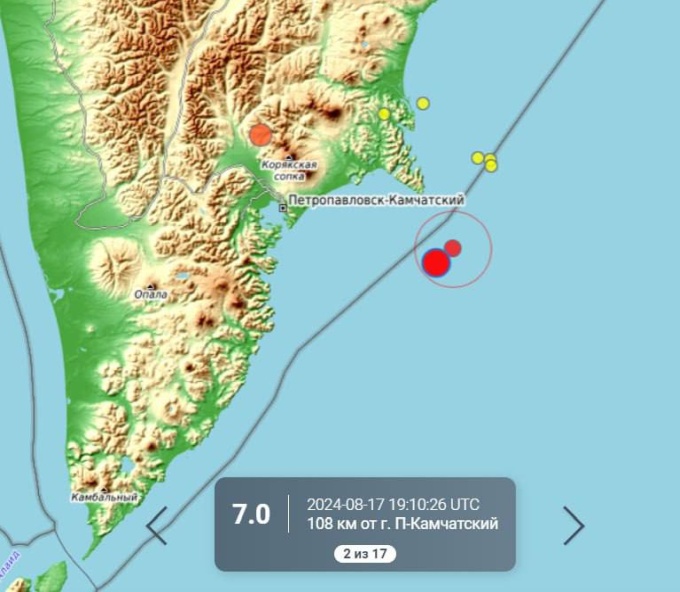 Камчатский филиал Единой геофизической службы РАН предупредил, что афтершоки после землетрясения на Камчатке будут продолжаться долго, в ближайшие дни ожидаются толчки в Петропавловске-Камчатском до 5,0 баллов. По данным на сайте филиала, чуть более чем за 3 часа после землетрясения зарегистрированы 15 афтершоков магнитудой от 3,7 до 5,6. Все они произошли в акватории Тихого океана в 79-119 километрах от Петропавловска-Камчатского.