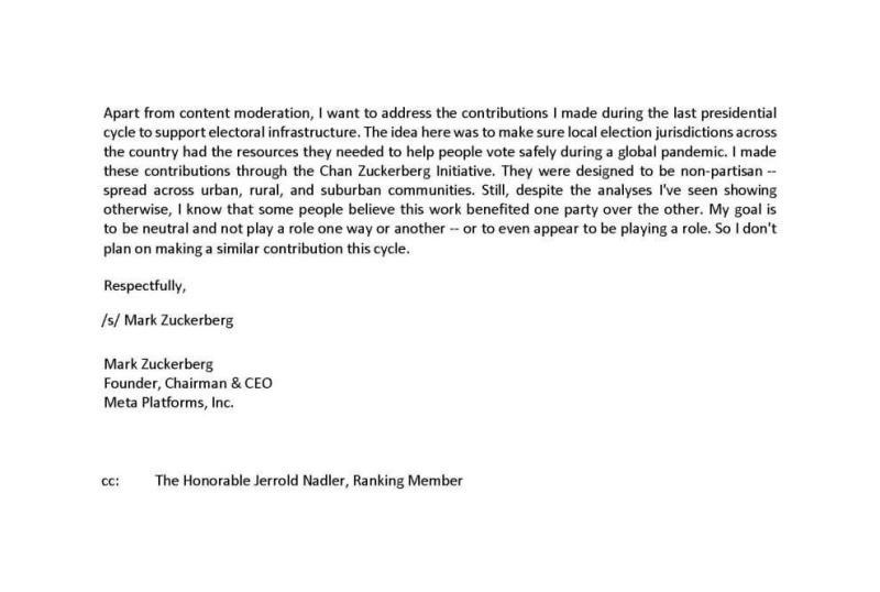 Об этом, по информации ряда СМИ, говорится в официальном письме Цукерберга юридическому комитету палаты представителей США.