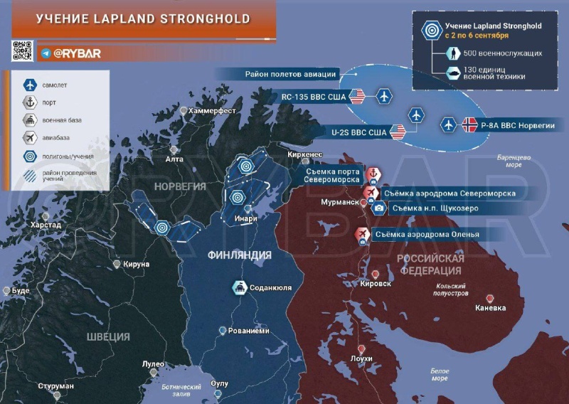 «Любое учение — это прекрасный способ скрыть другую деятельность. В данном случае речь идет о ведении усиленной разведки за российскими войсками на Кольском полуострове. Отслеживание активности стратегической авиации на Оленье, Северного флота и других формирований является одной из основных задач, которую теперь выполняют финские подразделения. Именно с вступления Финляндии в альянс повысилась интенсивность полетов разведавиации в Баренцевом море, где чуть ли не на регулярной основе летают американские RC-135 и U-2S, а также норвежский Р-8А», — пишет телеграм-канал «Рыбарь».