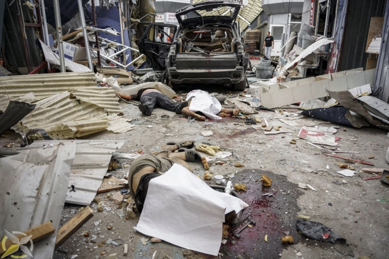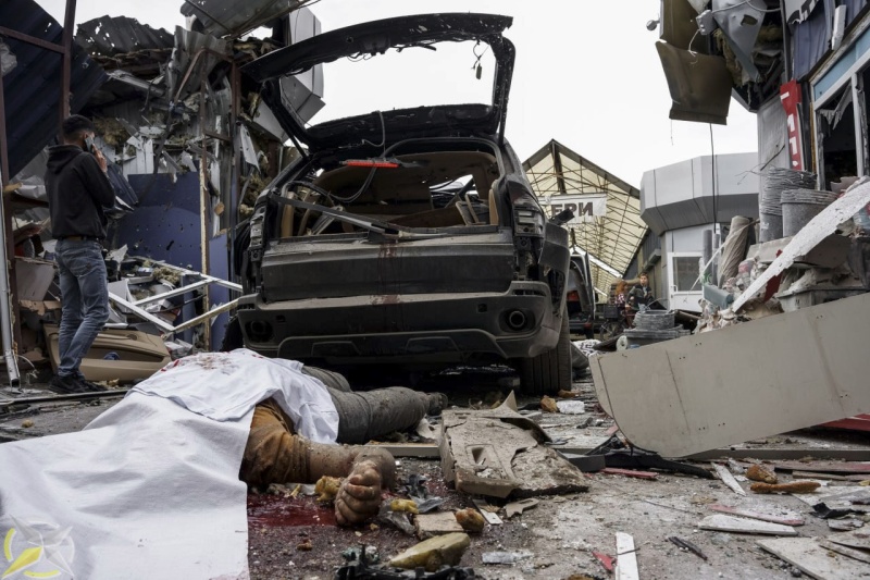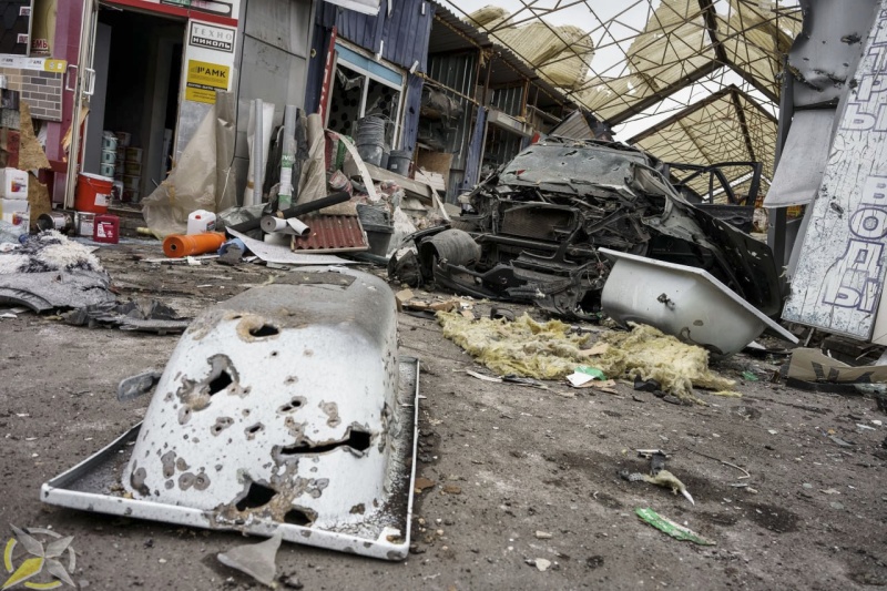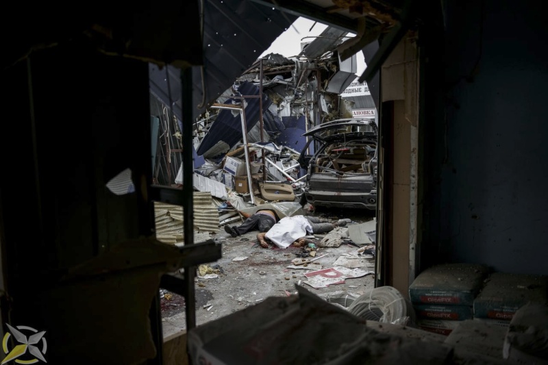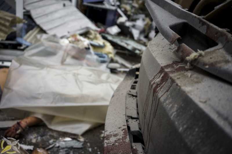 Боеприпас ВСУ разорвался в торговых рядах. Повреждения получили строительные магазины. В салоне машины, припаркованной у строительного магазина, погибла женщина. В результате удара на месте погибли еще парень и мужчина.