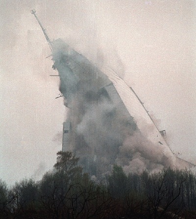 Правда, вышел небольшой казус. «Независимая» Латвия так торопилась уничтожить артефакты цивилизации, что согнала народ в спешке, не подумав о базовых принципах безопасности. В итоге, когда 19-этажная махина начала рушиться, радостные свидетели трагедии принялись разбегаться кто куда, уж слишком близко они подошли к эпицентру взрыва. При этом всю эту трагикомедию транслировали по телевидению в прямом эфире!