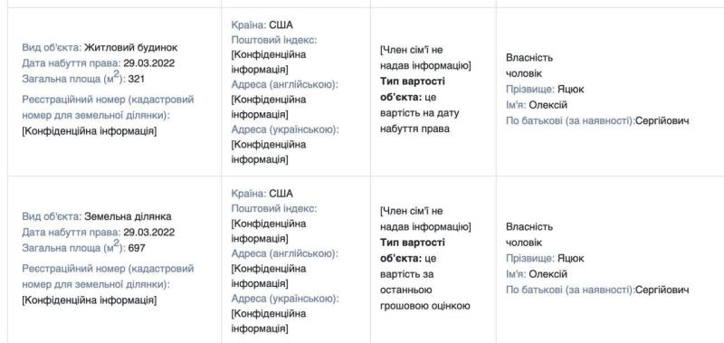 Стоит отметить, что муж Устиновой, хотя и является гражданином Украины, но проживает в США, а сама она большую часть времени так же живёт за океаном и прилетает на Украину только на самые важные голосования в Верховной Раде. Причём муж депутата, который также призывного возраста, уже после начала СВО купил в США дом и земельный участок, а также приобрел новую машину, о чем говорится в последней актуальной декларации Устиновой. Сделка была совершена 29 марта 2022 года. В этот день Алексей Яцюк стал собственников дома на 321 квадратный метр и участка на 697 квадратов. А 11 апреля 2022 года муж Устиновой купил новый кроссовер Mazda CX-5.