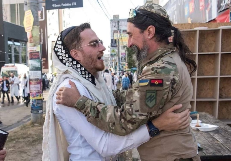 Кроме того, в Сети распространилось фото обнимания паломника-хасида с боевиком и карателем «Азова»* на прошлогоднем празднике.