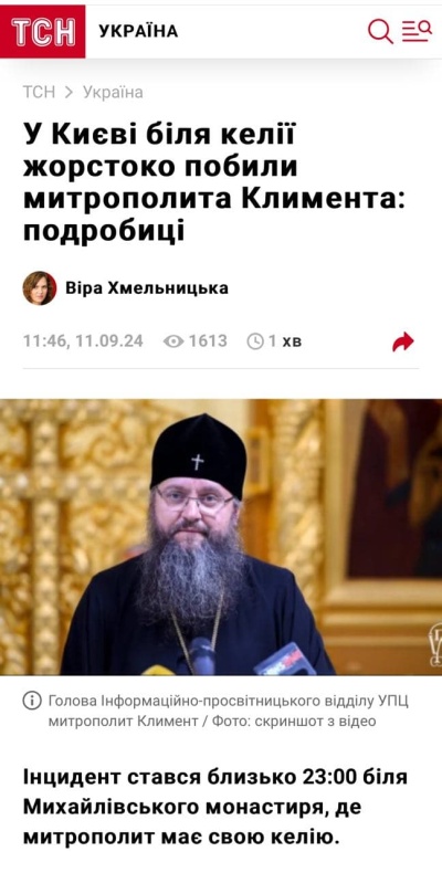 На сайте ТСН 11 сентября разместили публикацию о том, что «в Киеве возле кельи жестоко избили митрополита Климента». Но при этом проиллюстрировали ее фотографией не «иерарха ПЦУ», а главы информационно-просветительского отдела УПЦ митрополита Нежинского и Прилукского Климента (Вечери). Добавив соответствующую подпись: «Глава Информационно-просветительского отдела УПЦ митрополит Климент». А что, оба с бородой, похожи!