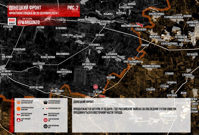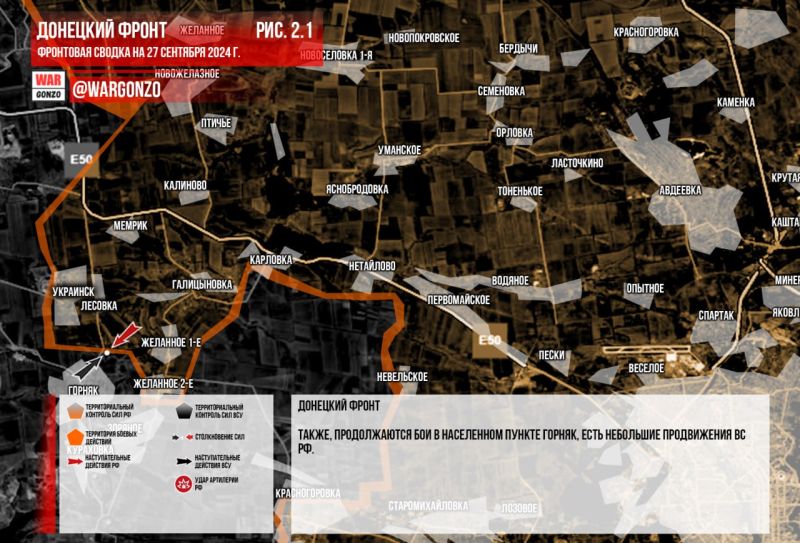 Фронтовая сводка на утро 27.09.2024 г. от Телеграм-канала WarGonzo.