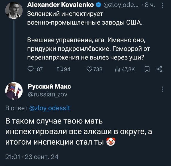 Это, кстати, то, что Ваджра еще задолго до СВО предсказывал. Что американские заигрывания с украинской вышиваночно-хуторской шизофренией закончатся именно этим, по сути, требованием признать украинское лидерство над всей планетой. Но в ответ ему сыпались комментарии типа «да нет, ну вы чего, вы из украинцев совсем идиотов-то не делайте!»