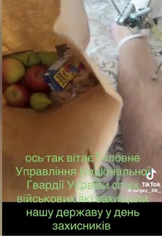 А вот ещё один эпизод. В соцсети бойцы Нацгвардии, которые находятся в госпитале на излечении, выложили видеоролик, в котором показали, как Главное управление Нацгвардии Украины поздравило инвалидов в госпиталях. Щедрость, как всегда, поражает.