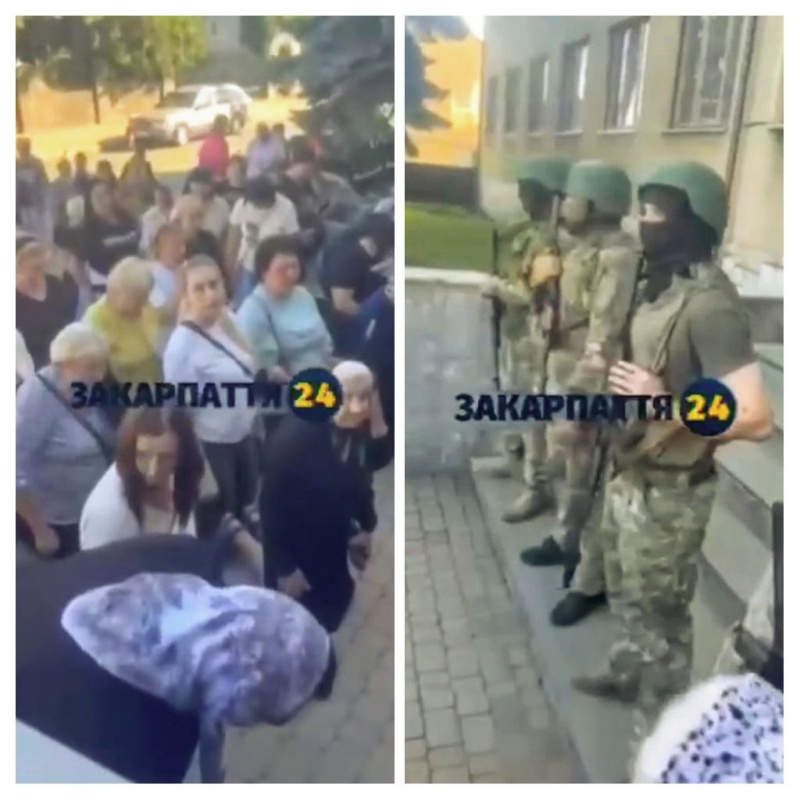 У здания Хустского ТЦК тот час же собрались местные жители, устроившие массовую акцию протеста.