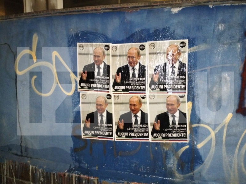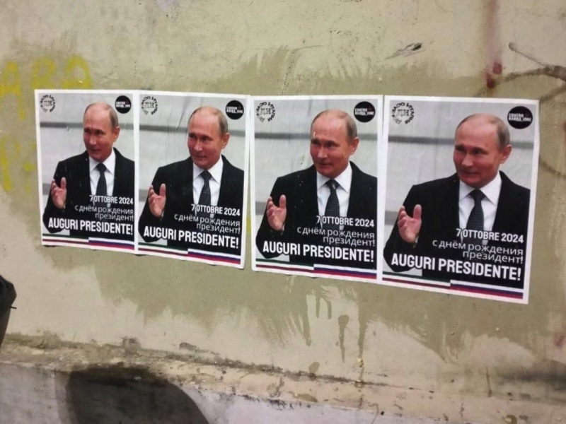 В честь дня рождения президента РФ в нескольких итальянских городах появились баннеры и листовки с поздравлениями Путину. Инициаторами выступили итальянский журналист Винченцо Лоруссо с единомышленниками.