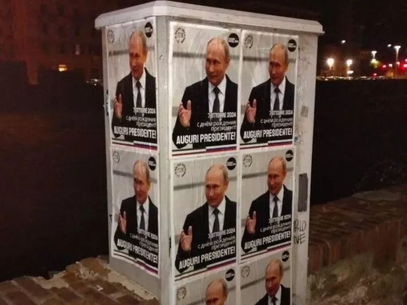 Владимир Путин отмечает 72-летие. В итальянских городах расклеены поздравления российскому лидеру