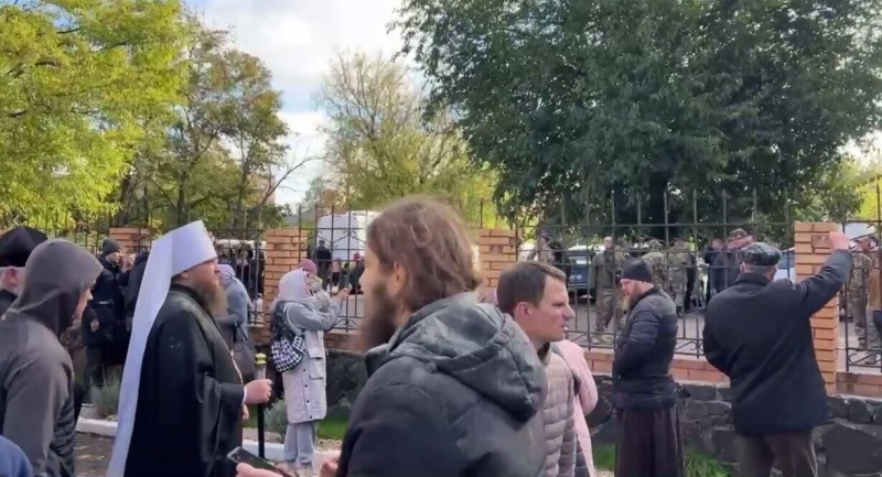 По ее данным, неизвестные отбирали у верующих телефоны и не позволяли снимать происходящее, срывали камеры видеонаблюдения. «Епархиальное общежитие духовенства оцеплено бандитами. Малолетние дети священников (7 детей от 3 месяцев до 8 лет) напуганы, в состоянии стресса», — отмечается в сообщении.