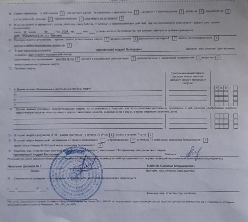 Полынков прикладывает к посту справки, выданные в части за подписью Пузика. Там действительно не указана причина гибели подполковника Грицая, говорится лишь о том, что смерть наступила по «неуточненным причинам».