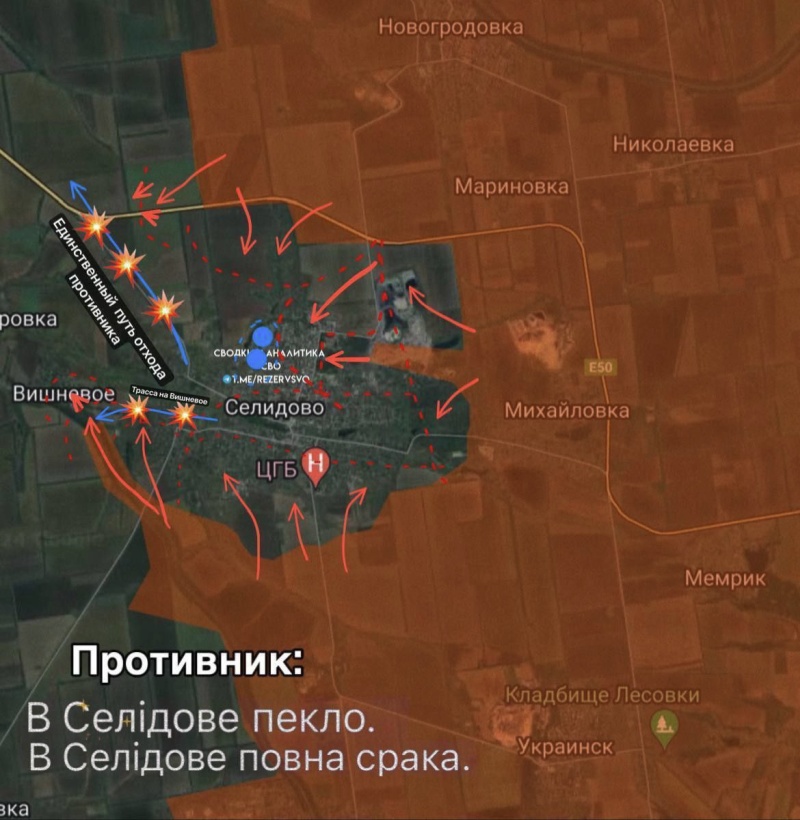 «Судя по радиоперехватам и оперативной информации, силы противника готовятся к бегству из Селидово. Ждут отмашку сверху. Армия России стала активнее работать авиацией на данном направлении, что делает положение личного состава ВСУ критическим», — говорится в сообщении телеграм-канала «Фронтовая птичка».