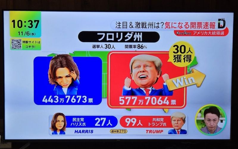 А сервильные японские СМИ пестрят заголовками про великолепную победу Трампа. Ведущее агентство «Киодо цусин» сообщает японцам: «Предварительные подсчеты показали, что вице-президент Харрис, которая могла стать первой в стране женщиной-главнокомандующим, показала худшие результаты, чем ожидалось»…