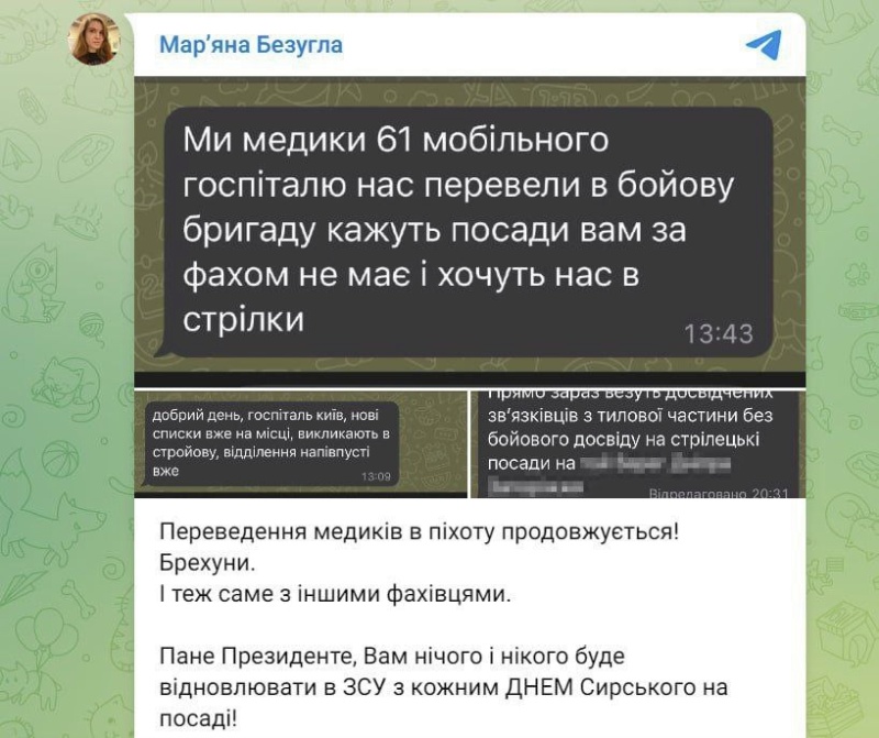 Также из-за огромных потерь продолжается перевод в пехоту ВСУ медиков, связистов, авиатехников, ПВОшников и других военных специалистов.