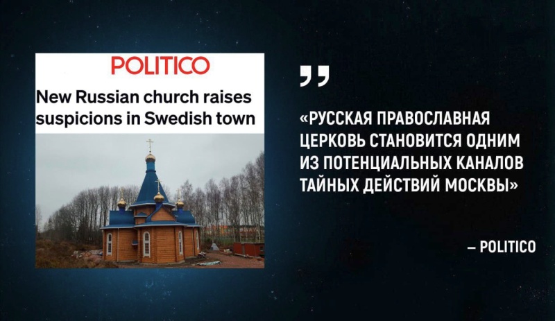Так, недавно построенный русский православный храм в шведском Вестеросе подозревают в сборе информации для российских спецслужб, о чем сообщает издание Politico. Шведов, как, впрочем, и журналистов упомянутого издания, особо напрягает тот факт, что храм расположен в 80 км от местного аэропорта, где проходят военные учения. Поэтому, дескать, из окна одноэтажной церкви русские шпионы могут разглядеть все НАТОвские гостайны. Западная пресса отмечает, что Швеции следует усилить контроль над «организациями, связанными с Москвой», поскольку «в обители могут прятаться священники с биноклями».