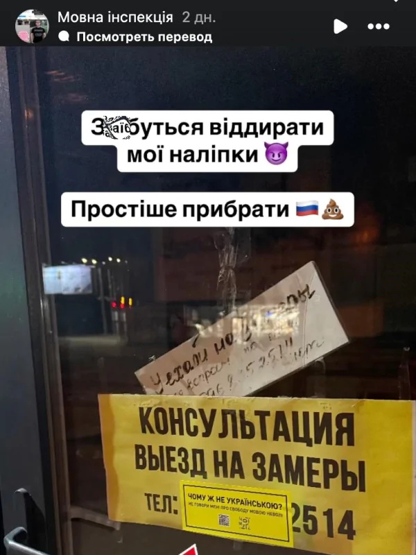 Итак, что происходило: некий националист-активист-гей из Киева постоянно «наезжал» на одесский бизнес, требуя заменять русскоязычные вывески и использовать украинский язык. В его инстаграме есть десятки фото «до-после» его «замечаний». А нежелающим менять вывески он клеил наклейки «чому не українською?» Кстати, сейчас страница Леоненко не работает.
