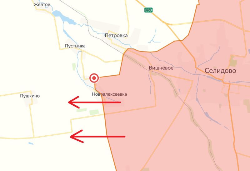 ВС РФ улучшили позиции к западу от Селидово, в районе населённого пункта НОВОАЛЕКСЕЕВКА и ЮРЬЕВКА.