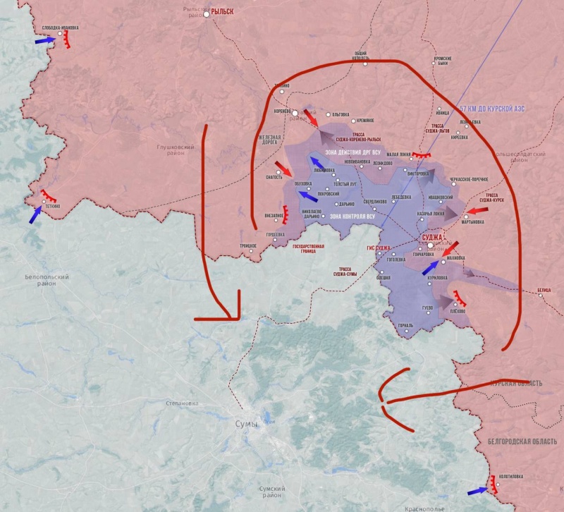 Если основная дорога снабжения будет перерезана, то вся группировка окажется в очень плохом положении, особенно зимой. Украинские паблики подчеркивают, что ситуация на курском направлении тяжелая, и это при том, что она в приоритете и туда отправляют бойцов больше, лучше и чаще.