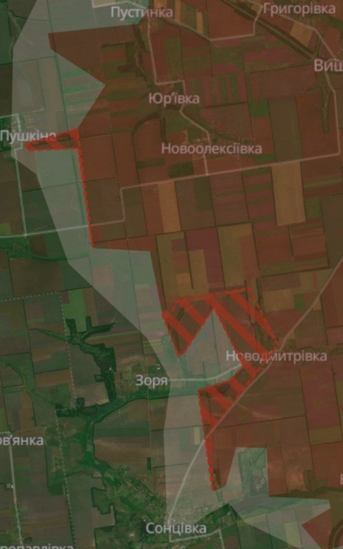 В Новодмитровке боестолкновения сместились в западную часть населённого пункта. Армия России продвинулась на глубину до 650 метров», — говорится в сообщении телеграм-канала.
