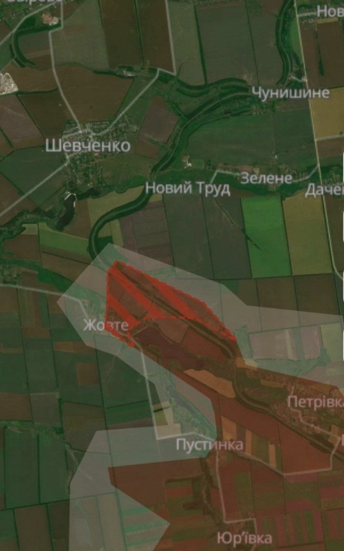 «Покровское направление. В Желтом российские войска заняли центральную часть населённого пункта и продвинулись вдоль железной дороги на участке шириной до 1.3 км на глубину до 1.2 км. Также продолжают давить в направлении Новотроицкого с целью перерезать дорогу на Новооленовку.