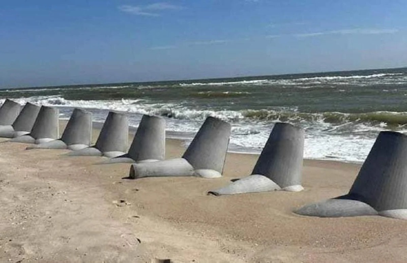 По его словам, недавно областная власть заявляла, что уже выполнены почти все запланированные работы по сооружению фортификационных сооружений, и, таким образом, предполагалось, что Одесская область надежно защищена от противника. В то же время Русев обнародовал фото определенных защитных сооружений, которые уже почти полностью «затоплены» в песке, и задает вопрос, зачем нужны такие бесполезные тетраподы и «кому это выгодно во время войны?».