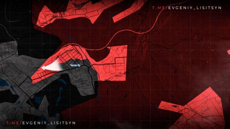 В ЧАСОВ ЯРЕ идут бои по всей линии: от северного фланга у КАЛИНОВКИ до южного у СТУПОЧЕК. В самом городе продолжаются ожесточённые бои за огнеупорный завод.