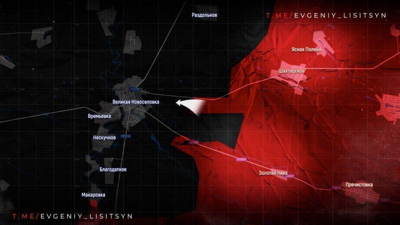 На ЮЖНО-ДОНЕЦКОМ НАПРАВЛЕНИИ наши парни выбили боевиков ВСУ из большого опорника у перекрестка возле РАЗДОЛЬНОГО и продвигаются в сторону НОВОГО КОМАРА. Севернее ЯСНОЙ ПОЛЯНЫ есть продвижение в сторону РАЗЛИВА. Вдоль русла Сухих Ялов бои в районе ВЕСЁЛОГО ГАЯ, а от ТРУДОВОГО штурмовики идут к КОНСТАНТИНОПОЛЬСКОМУ.