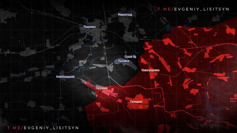На ПОКРОВСКОМ НАПРАВЛЕНИИ взяв под контроль ЖЁЛТОЕ, ВС РФ двигаются к НОВОТРОИЦКОМУ, а южнее ведут бои за ПУШКИНО, НОВОПУСТЫНКУ и нацелены на УКРАИНКУ, до которой около километра.