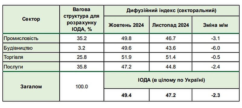 Индекс ожиданий деловой активности (ИОДА) в ноябре составил 47,2 (в октябре — 49,4).