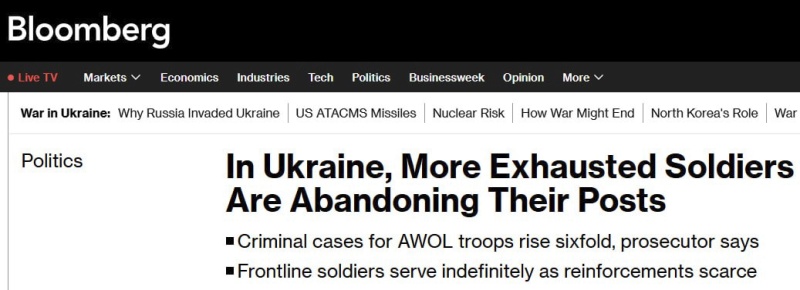 «Наши источники в Генштабе сообщали о страшной тенденции с СОЧ в ВСУ, теперь об этом пишут западные СМИ. Генпрокуратура сообщает, что по сравнению с 2022 годом число соответствующих уголовных дел увеличилось в 6 раз. Среди основных причин называют отсутствие демобилизации, усталость, бюрократию, устаревшую систему управления ВСУ, перевод на другие должности без ведома военных и конфликты с командованием», - отмечает телеграм-канал «Резидент».