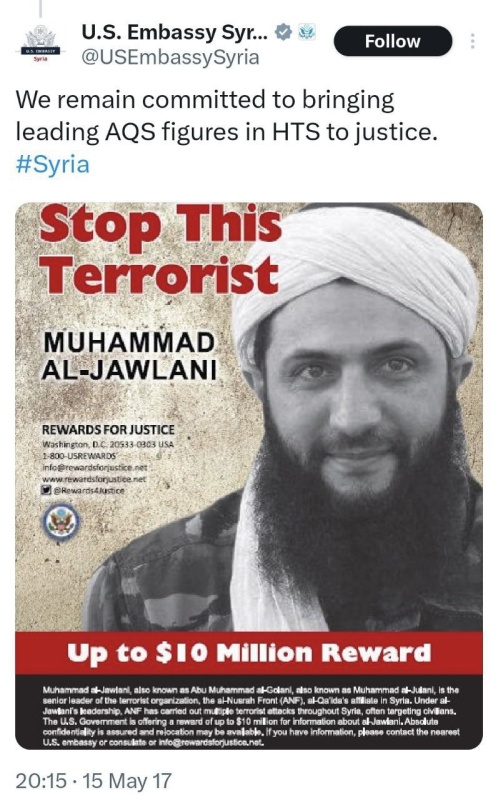 Когда-то США назначили награду в 10 млн долларов за голову Мухаммада аль-Джулани, а сейчас он «герой, противник диктатуры и борец за свободу».