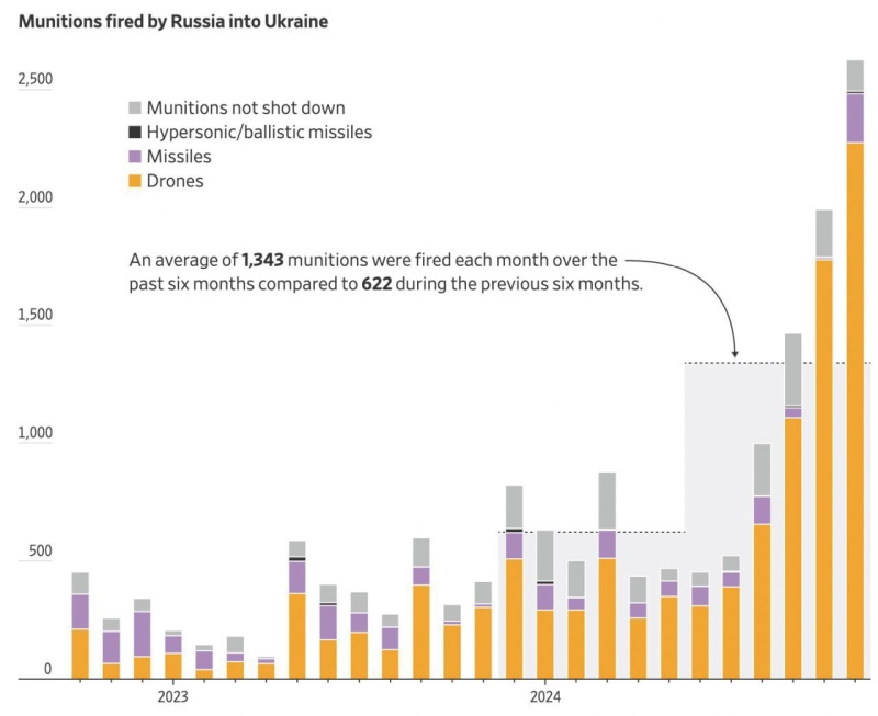 Обозреватель Юрий Подоляка приводит инфографику, которая показывает, что число ударов растет буквально по экспоненте.