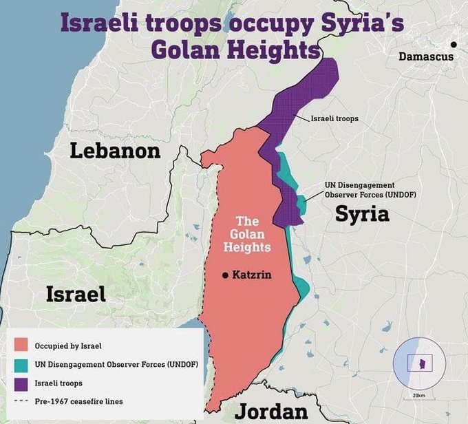В декабре израильтяне заняли буферную зону на границе с Сирией, созданную после арабо-израильской войны 1973 года. В частности, стратегически важную гору Хермон, в 40 километрах от Дамаска, столицы Сирии.