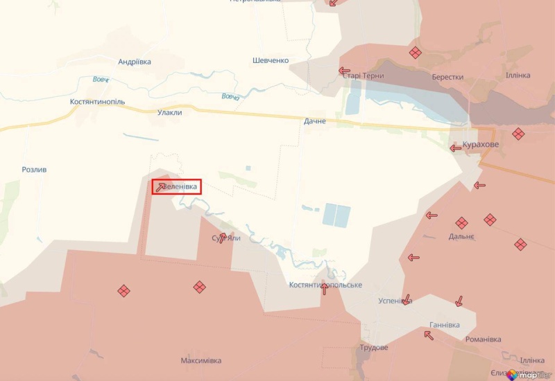 Курахово неумолимо переходит под контроль ВС РФ. Вчера главной новостью на данном участке фронта стало даже не занятие нами полностью всей жилой застройки Курахово (которую подтверждают и украинские околовоенные источники, вопреки даже заявлению их Генштаба), а прорыв наших войск в населенный пункт Зеленовка, где мы к вечеру и закрепились.