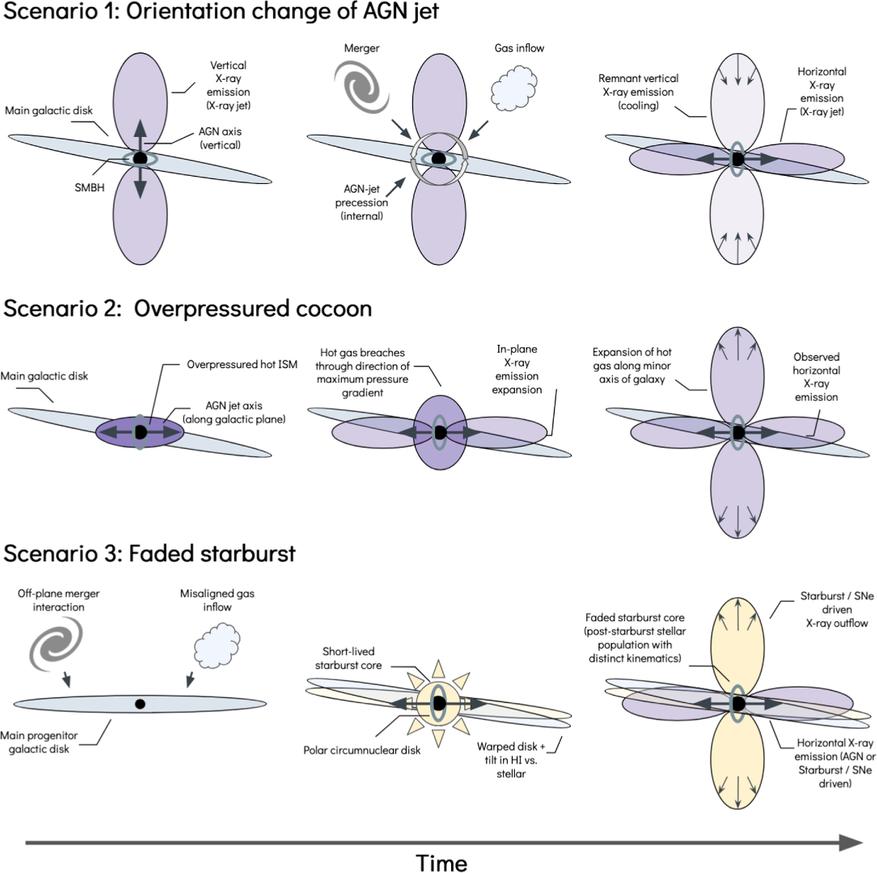 Его коллега, Памела Маркум, добавляет: «Обнаружение двух пар рентгеновских плюмов в одной галактике — событие экстраординарное. В сочетании с перевернутым пылевым диском это дает нам уникальную возможность заглянуть в историю этой галактики.»