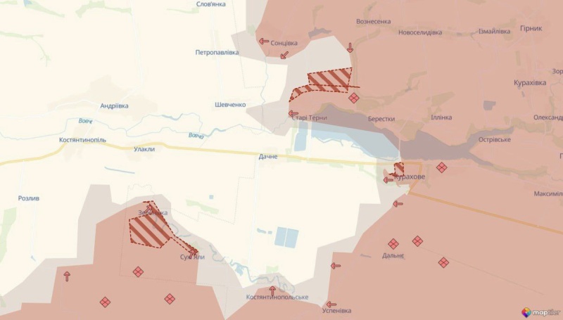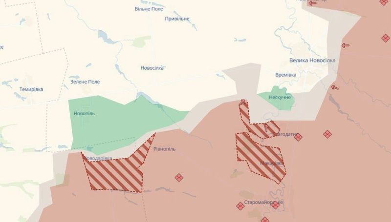 Также Deep State пишет, что армия РФ захватила Макаровку, Сухие Ялы и Зеленовку, продвинулась возле Старых Тернов, Новодаровки, Волчьего, Нововасильевки, Новоелизаветовки, Новоеленовки, Украинки, Зари, а также в Сторожевом и Курахово.