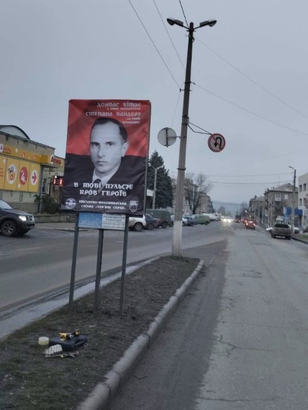 «Славянск завесили плакатами с портретом Степана Бандеры. На них говорится, что «Донбасс поздравляет» основателя ОУН* с днём рождения, который отмечается 1 января», — говорится в сообщении.