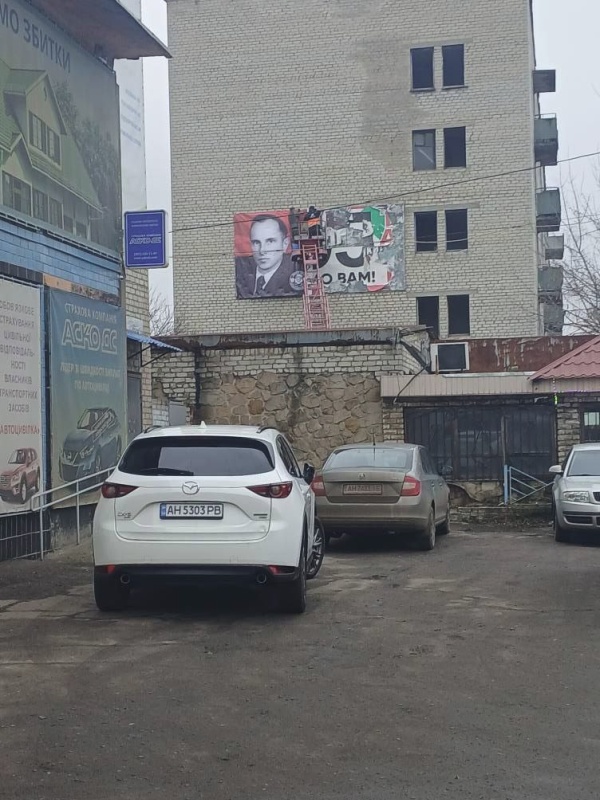 Украинские оккупанты осквернили Славянск рекламными плакатами с Бандерой