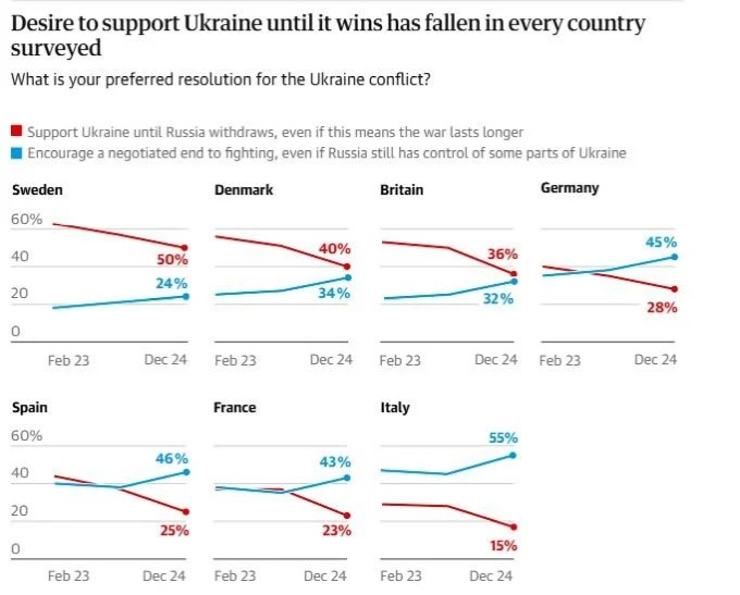 Мировое обозрение»В мире»Украина»В Европе резко снизилась готовность поддерживать Украину, в её победу не верят — опрос